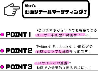 中でも、Joyプロモーション独自の『動画リテールマーケティング』をお勧めしております。アイディア0ベースのお客様でも安心の体制をご用意しておりますのでお気軽にご相談ください。